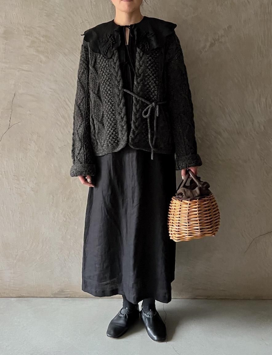フロントは編み紐を結んで留めて着る、カシュクール風の仕様。