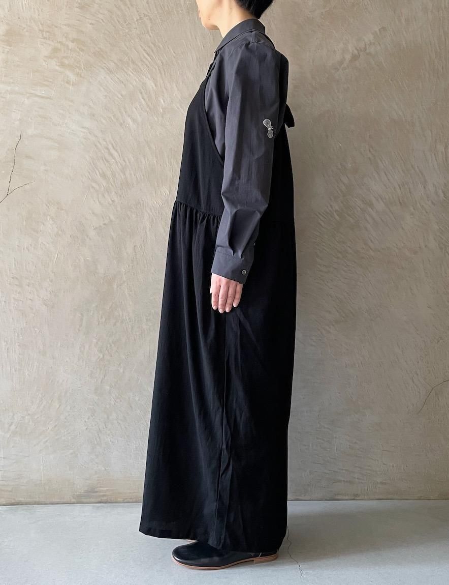 ウエストの切り替えにギャザーを入れた、ゆったりとしたワイドシルエット。
