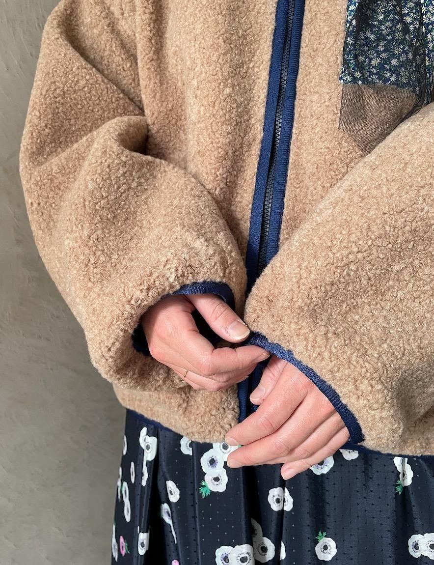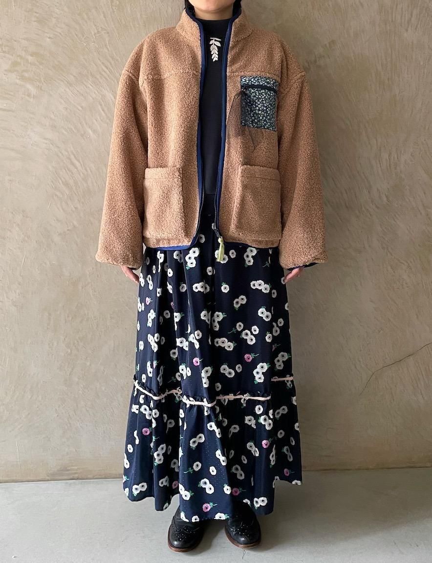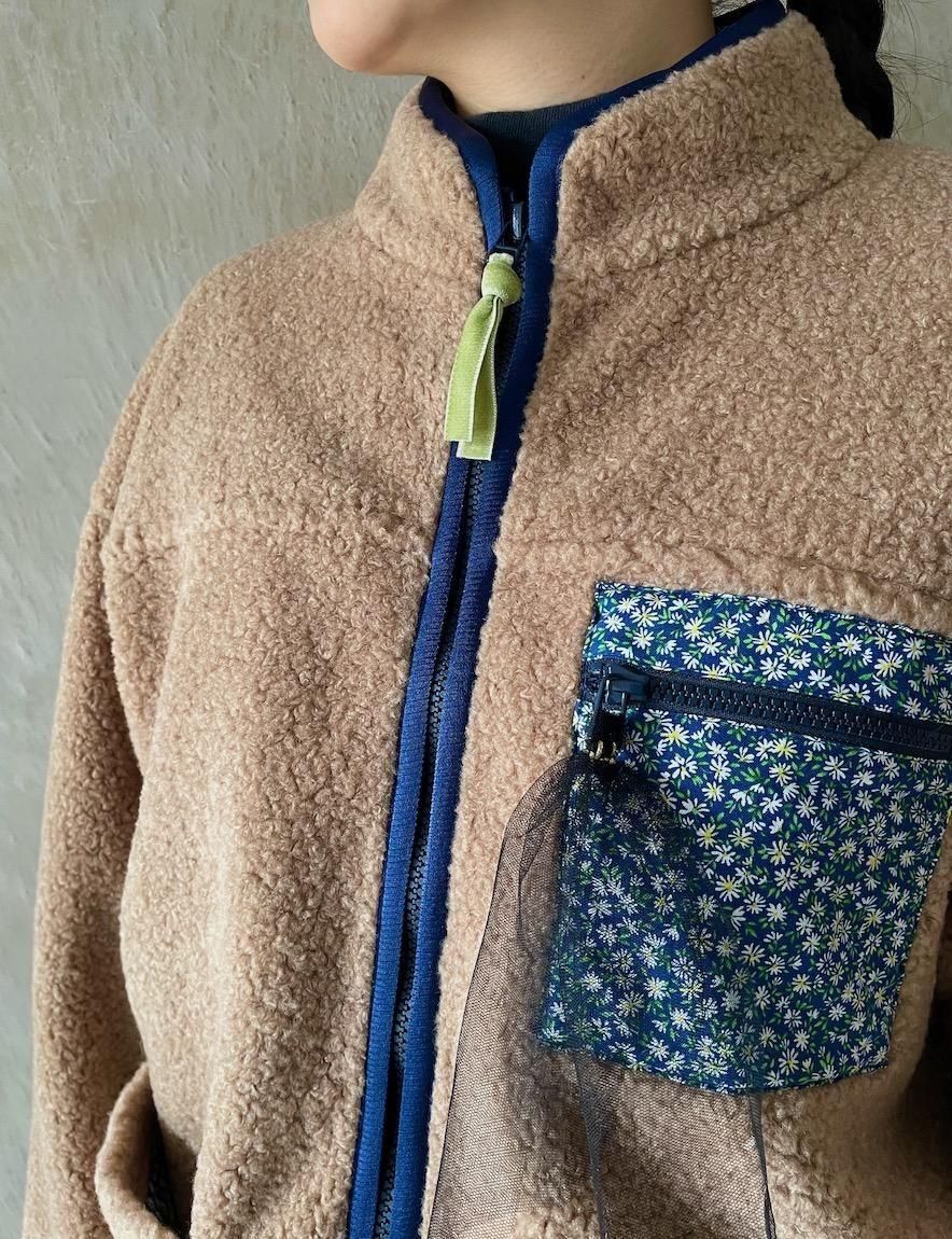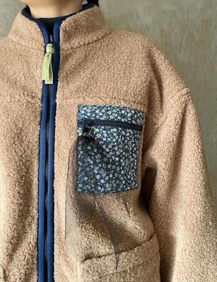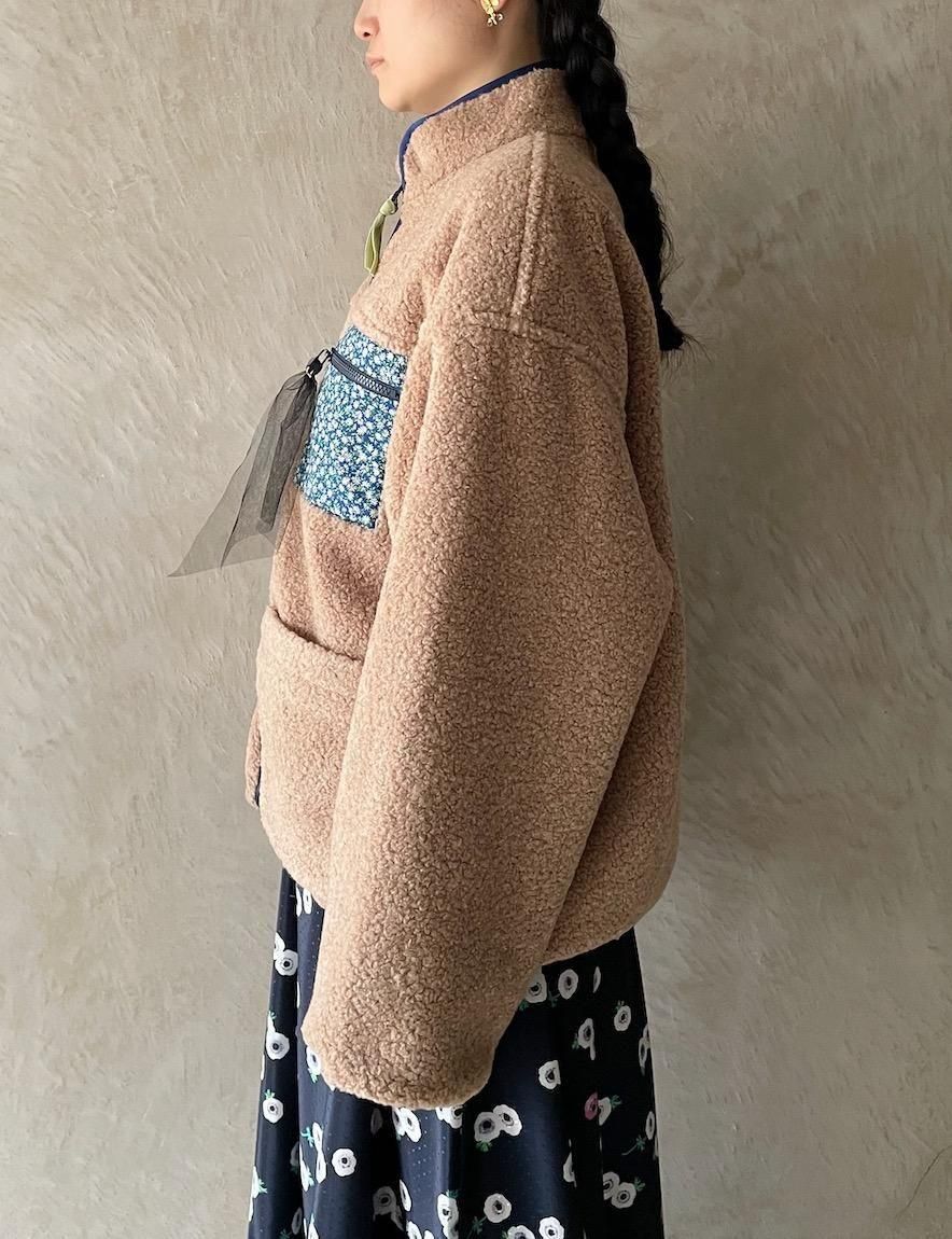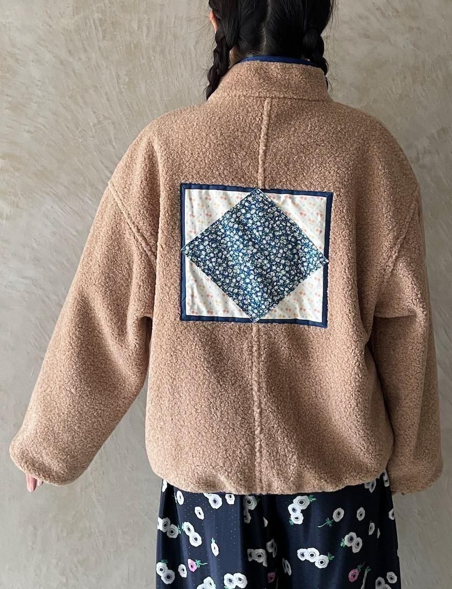 ボアフリースに小花のパッチが楽しい、フリースのジャケット。