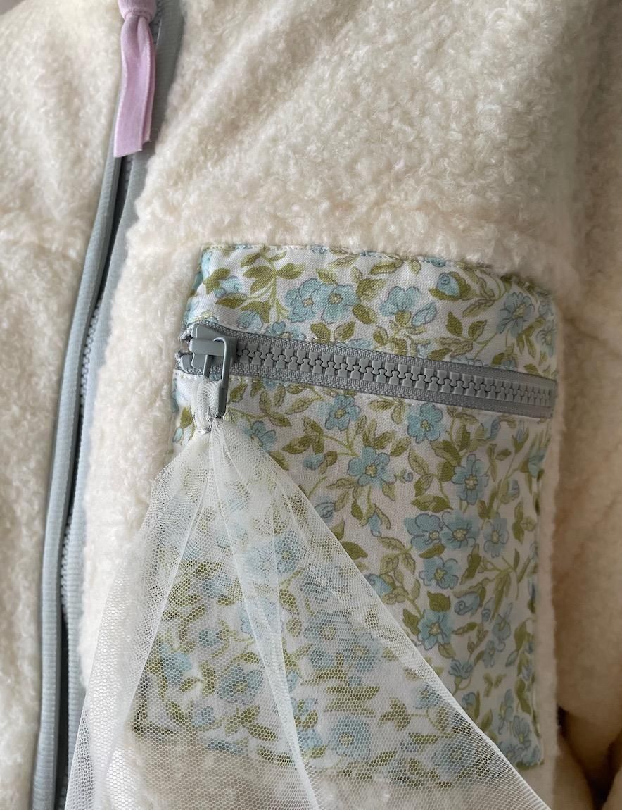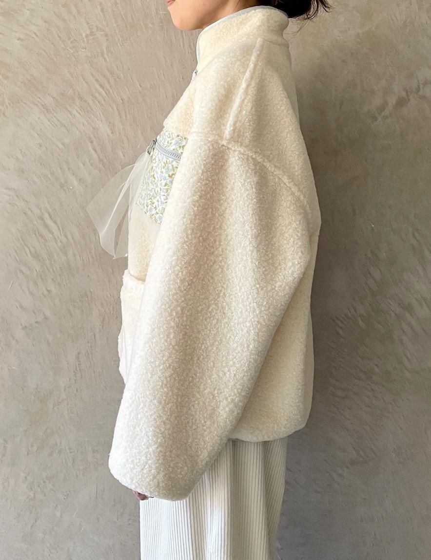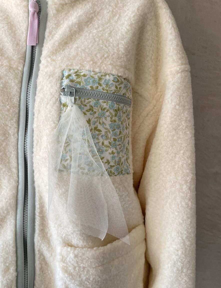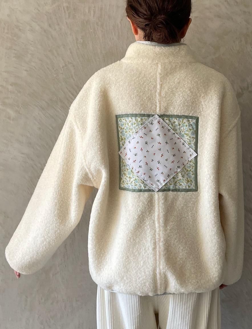 ボアフリースに小花のパッチが楽しい、フリースのジャケット。