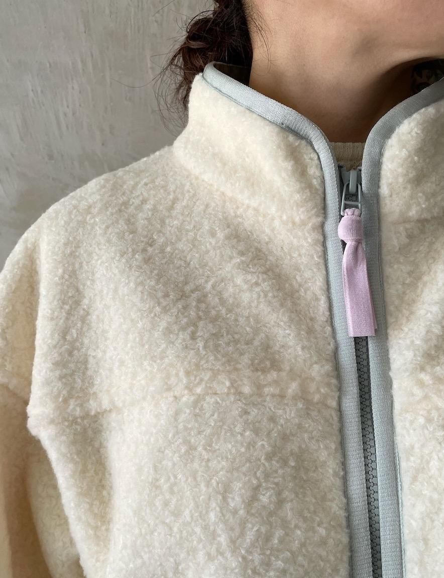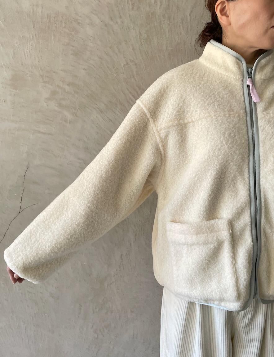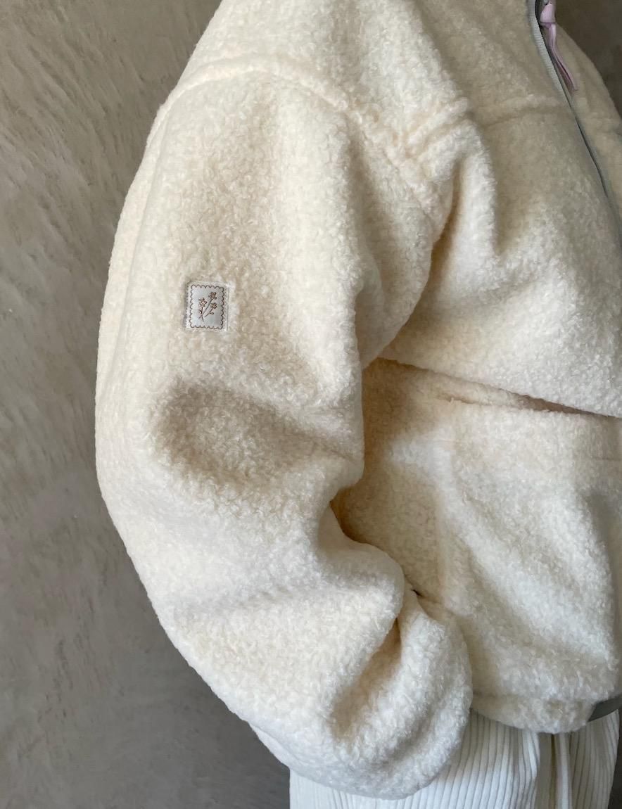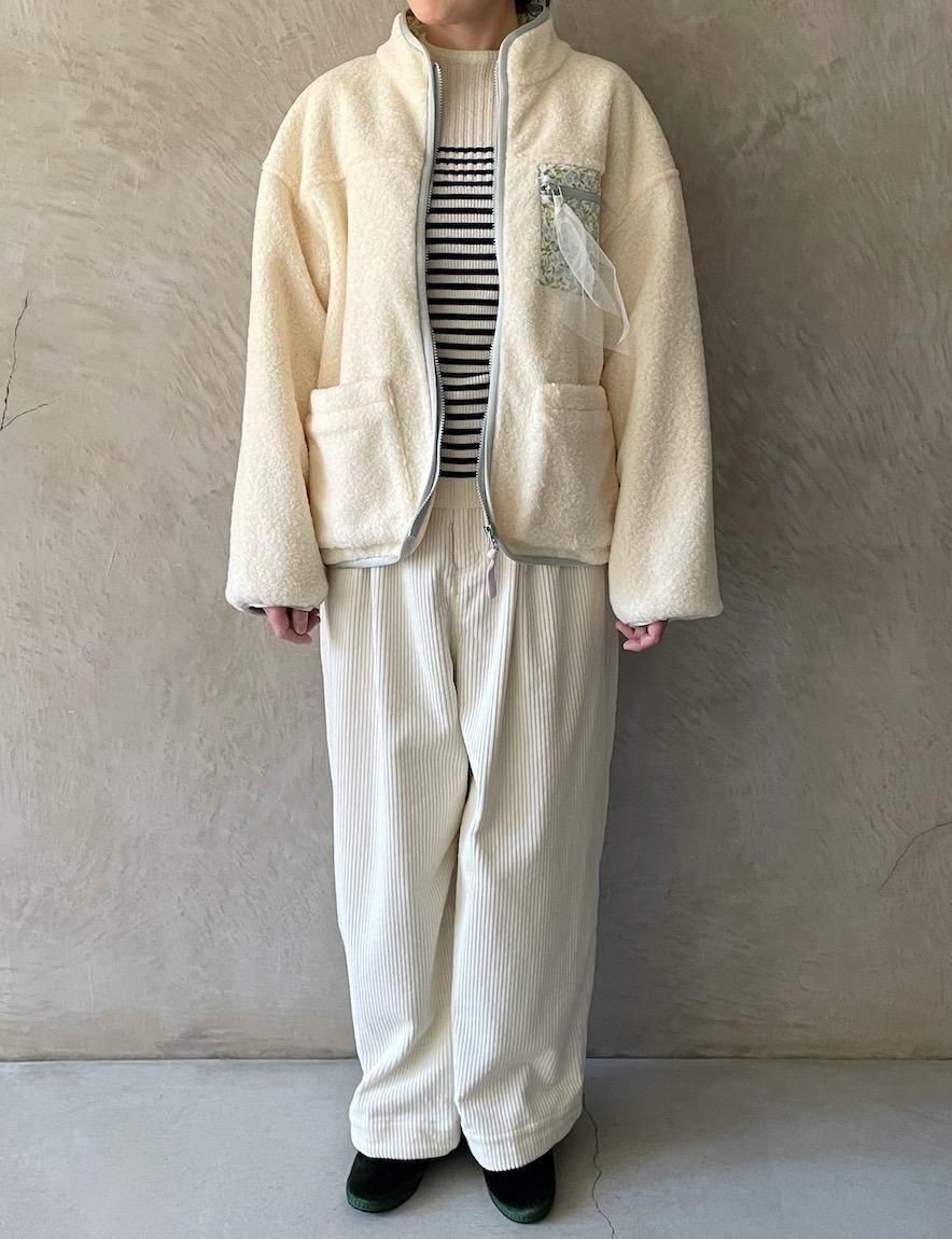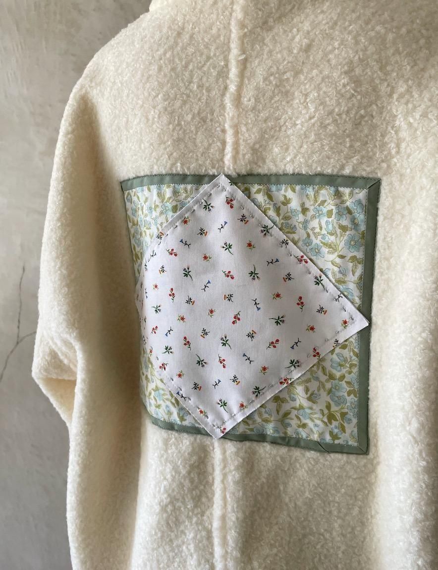 ボアフリースに小花のパッチが楽しい、フリースのジャケット。